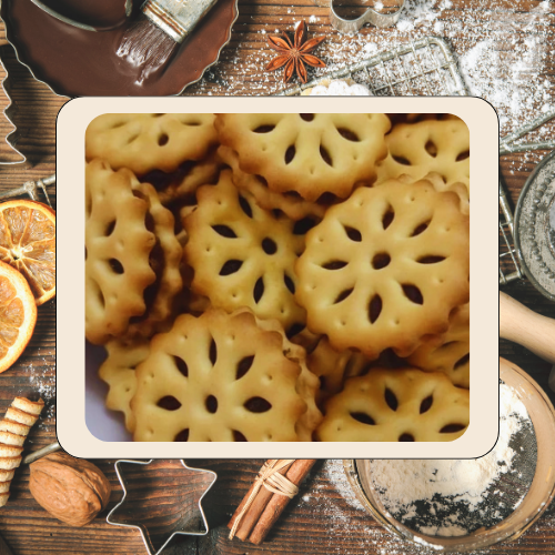 Enjoy these charming flower-shaped biscuits, baked to a beautiful golden-brown perfection. Each crispy biscuit sandwich is filled with a smooth, creamy center that perfectly complements the delicate crunch. Whether for snacking, sharing with loved ones, or brightening up tea time, these biscuits bring joy in every bite. A delightful treat for all ages!