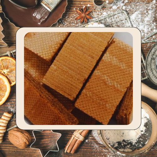 Cylindrical wafers with a crispy texture, often speckled with chocolate. Popular as snacks or dessert accompaniments and are often enjoyed with coffee, tea, or ice cream