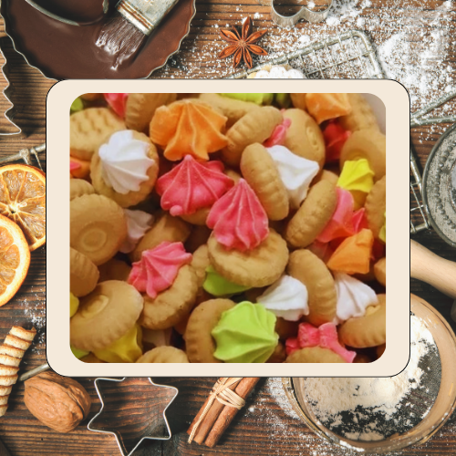 This Biscuits known as ‘Biskut Biji Asam’ that was very legend. Savor these colorful, bite-sized biscuits topped with a swirl of sweet, vibrant icing. Each biscuit is perfectly baked to a golden brown, delivering a delightful crunch paired with a sugary burst of flavor from the icing. Perfect for snacking, sharing with friends, or reliving childhood memories!